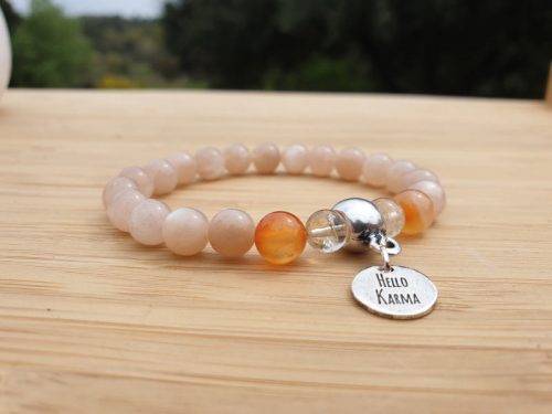 Notre bracelet de lithothérapie fertilité associe les minéraux les plus reconnus : pierre de lune et cornaline.